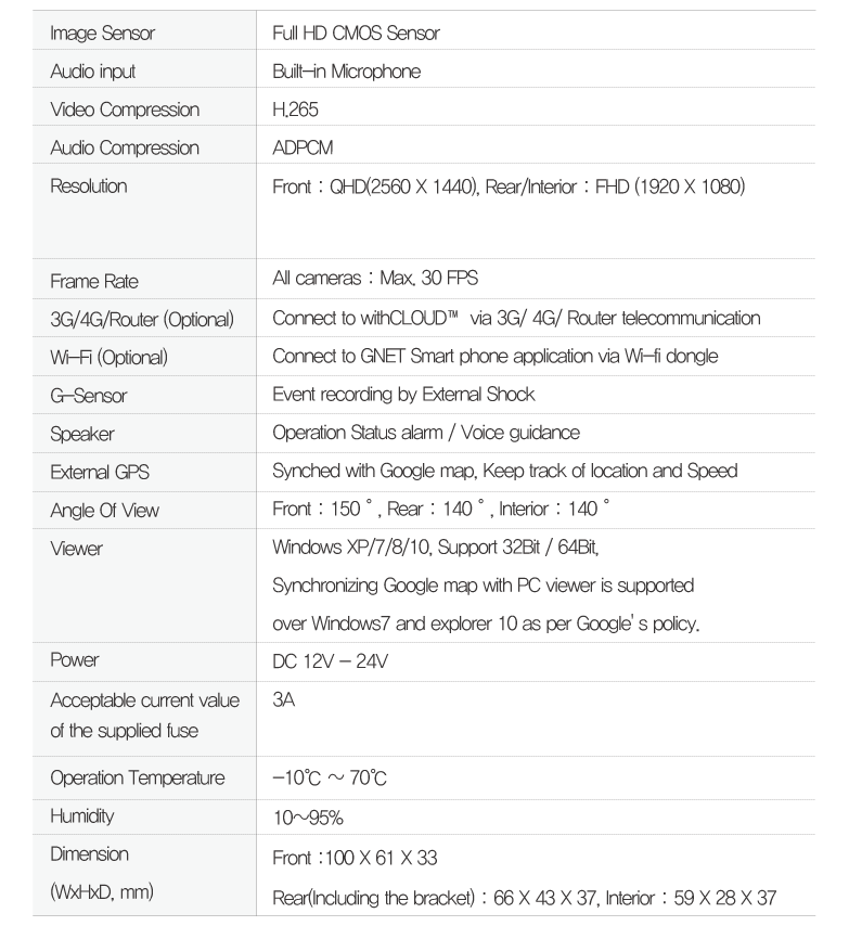 the recorded video of the vehicle. You can easily set up wirelessly via GNET APP at the time of smartphone interlocking